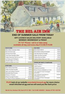 Items can be purchased in the pub to take away, or ordered for delivery.